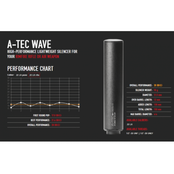 Specifications for the A-Tec Wave Silencer/Suppressor .22LR 1/2-20 UNF: