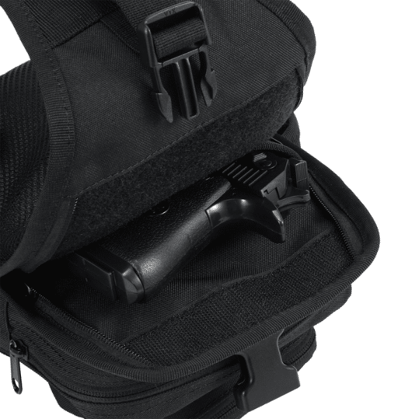 Most importantly, it features a dedicated pistol compartment, making it discreet, covert, and quick to access when needed. Plus, with multiple storage compartments, you can pack everything neatly and move comfortably without feeling weighed down.