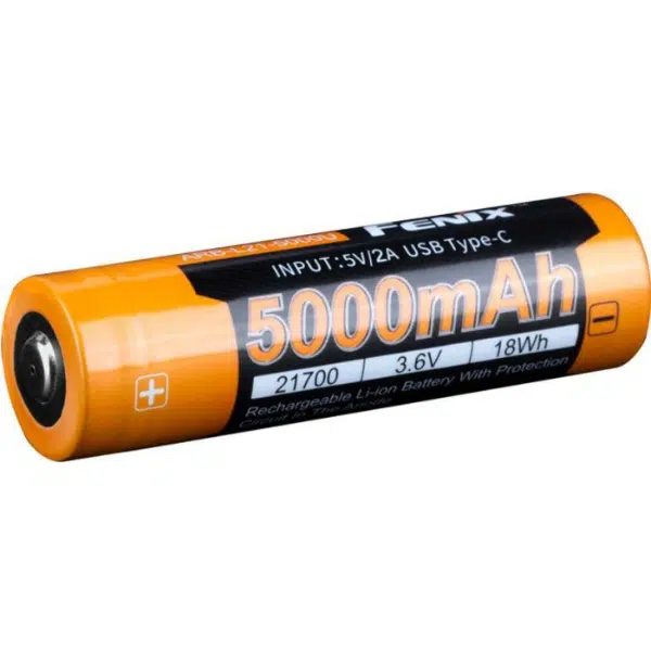 Introducing the Fenix Battery ARB-L21-5000 V2.0 (5000MAH 21700). A cutting-edge power solution that combines high capacity with user-friendly features. Designed for enthusiasts who demand more power and longer runtimes, this 21700 Li-ion USB rechargeable battery boasts an impressive 5000mAh capacity, ensuring your Fenix flashlight remains a reliable companion for extended adventures.