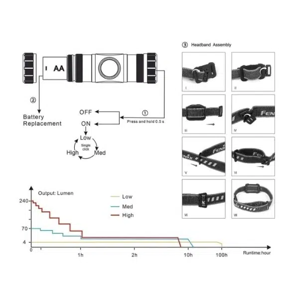 Operating Instructions for the Fenix Headlamp HM23 240 Lumens: