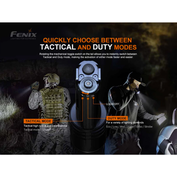 • Mechanical toggle switch for tactical, duty, and lock mode switching.