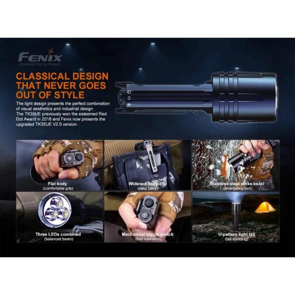 Additional features of the Fenix TK35UE V2.0 flashlight