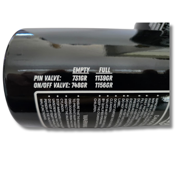 • Pin Valve Empty: 731gr