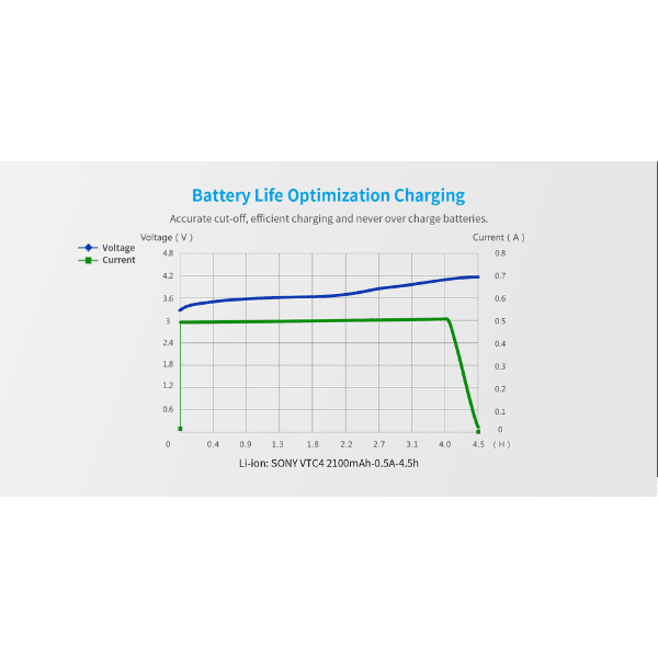With its broad battery compatibility, intelligent charging adjustments, and informative LCD display, the XTAR VC2 is an excellent choice for users who want more than just a basic charger. The ability to monitor charging current, voltage, and battery capacity provides valuable insight into battery health, while built-in safety notifications help prevent errors and wasted time. Powered through a versatile micro USB connection, the VC2 offers convenient charging wherever a 5V USB source is available. Reliable, user-friendly, and packed with practical features, the XTAR VC2 is a dependable charging solution for everyday battery users.