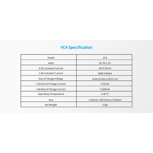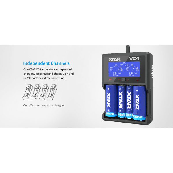 - One XTAR VC4 equals four separate chargers. Recognise and charge Lion and Ni-MH batteries at the same time.