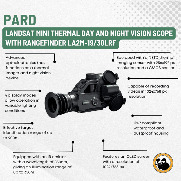 Specifications of the Pard Landsat Mini Thermal Day and Night Vision Scope with Rangefinder LA2M-19/30LRF: