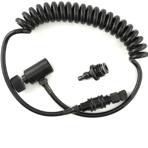Remote-Coil with Slide-Check – Get that bulky tank off your paintball gun with a coiled remote! Unlike Steel braided hoses, the coil will expand and contract to fit whatever position you are in! This remote system allows maximum comfort and mobility when in use and is ideal to have when using a stock or a marker butt.