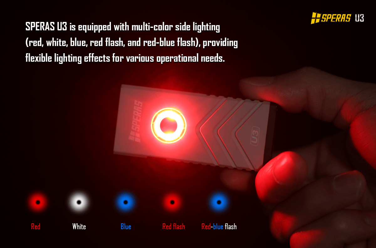 • The Speras U3 features multi-colour side lighting—red, white, blue, flashing red, and red-blue modes—giving you the flexibility to adapt your lighting to any need while preserving your night vision.