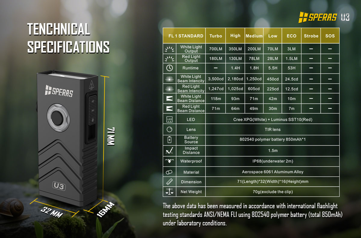 With an impressive 700 lumens, the Speras U3 ensures clear visibility in even the most demanding conditions. Whether it’s revealing hidden details or illuminating unseen surfaces, this flashlight excels in all environments.