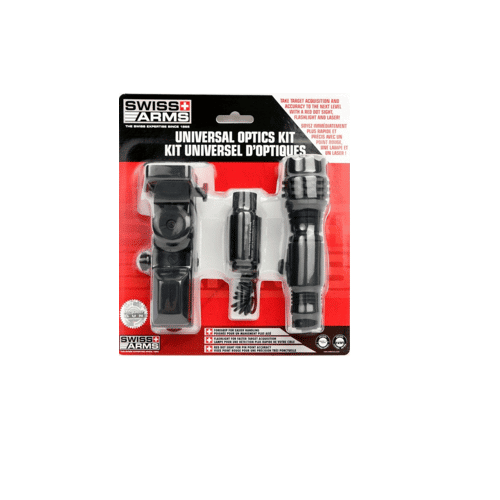 Includes red laser, flashlight with Weaver mount & red dot reflex sight with Weaver mount. Sight your targets quickly & accurately with this optics accessory kit by Swiss Arms. This universal optics kit is basically a solid value for entry-level airsoft enthusiasts and includes a red laser, flashlight & red dot reflex sight for fast target acquisition.