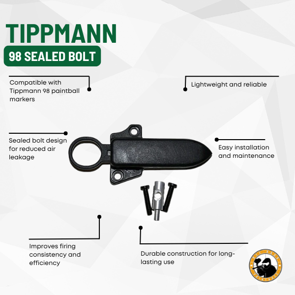 The Tippmann 98 Sealed Bolt is engineered to enhance the performance and reliability of your Tippmann 98 marker. This sealed bolt system reduces air leaks and improves firing consistency, making your marker more efficient and easier to maintain. Ideal for both casual and competitive paintball players, it ensures smoother operation and longer-lasting performance.