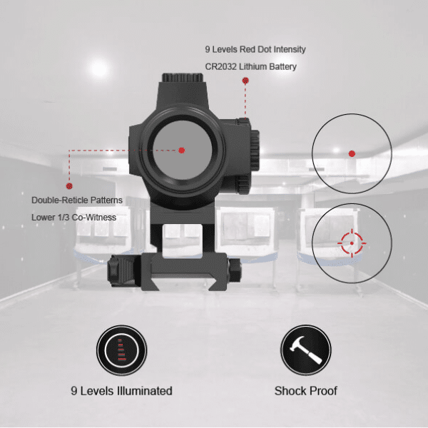 • 3MOA Dot Size with 9 Levels Red Dot Intensity, 8 Daylight & 1 NV.